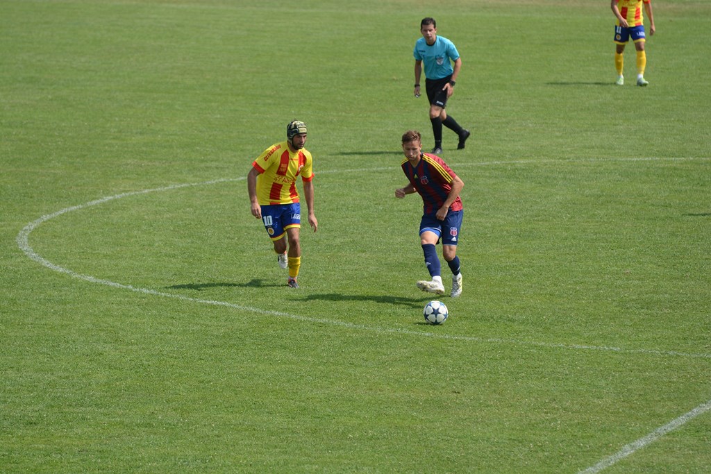 Foto. Secvență din meci, cu Ripensia în roșu-galben-albastru (sursa: bihon.ro) Sâmbătă, în capitala Țării Crișurilor, antrenorul Remus Steop a trimis la start o formulă cu o singură schimbare de primul ”11” din etapa precedentă (16-0 cu Suceava, la debut). Bobină în locul lui Stoi, în centrul liniei de mijloc. Și Bobină a ...