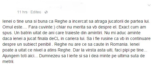 Ce accidente genetice, ce tragedii s-au abătut peste această țară, de s-au putut inversa, atât de mult, valorile? Ce tupeu de mahala, de neam prost și manelizat, poți să ai să scrii astfel despre unul dintre cei mai mari antrenori și OAMENI pe care i-a dat fotbalul românesc? Despre un om care și acum, la 78 de ani, arată ca un star de cinema și se poartă ca un gentleman? Cât de jos mai putem coborî, cât de multă drojdie se mai poate scoate la iveală?